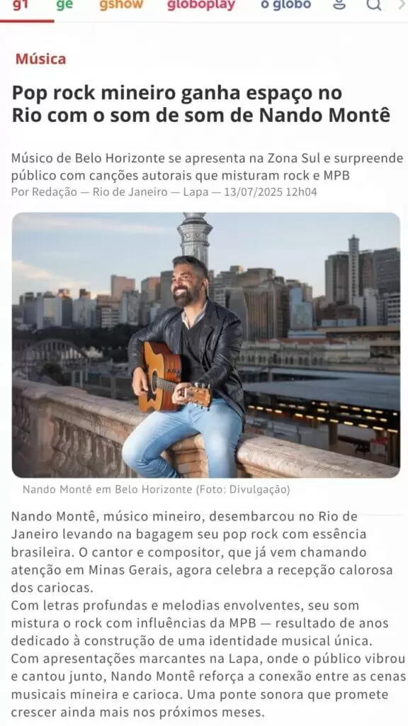 Com profissionalismo, versatilidade e sensibilidade artística, Nando Montê segue ampliando seu espaço na música brasileira, equilibrando a força de sua obra autoral com shows que celebram grandes clássicos do pop rock e da MPB.